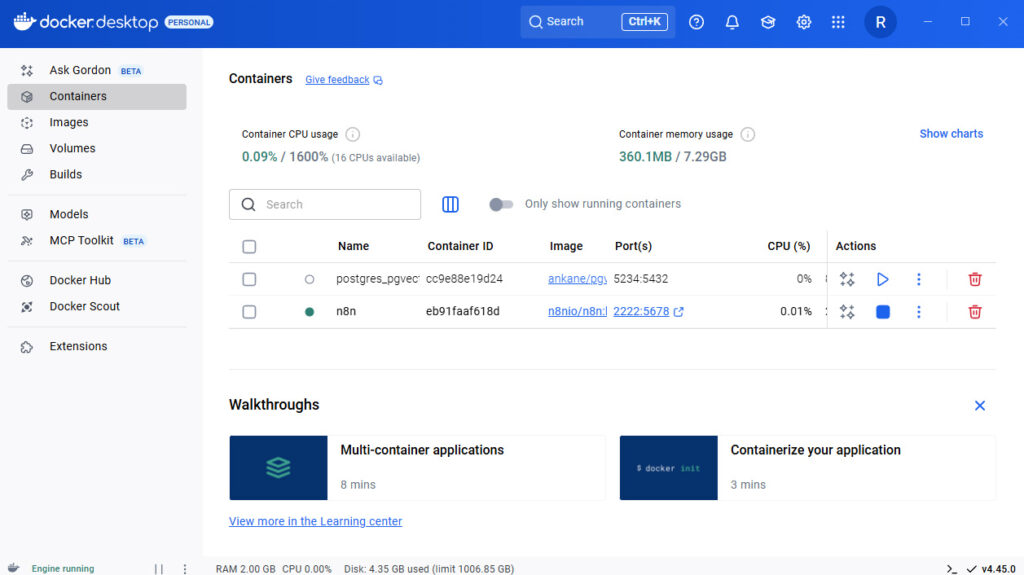 Sobald der Container läuft, kannst du n8n im Browser unter http://localhost:5678 aufrufen.