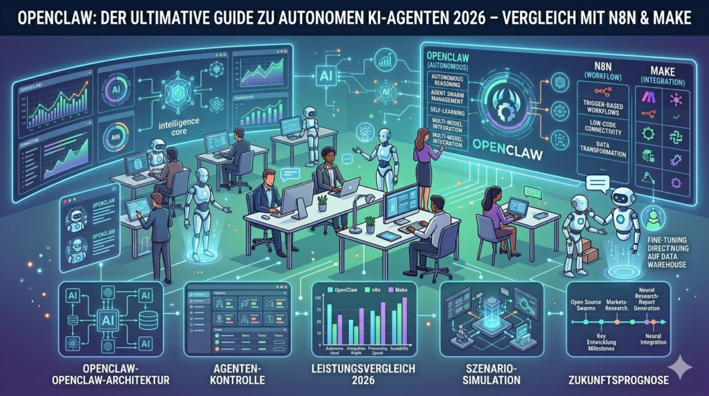 Während OpenClaw primär als Plattform für autonome KI‑Agenten konzipiert ist, die eigenständig Pläne schmieden und Tools steuern, positionieren sich n8n und Make traditionell als visuelle Workflow‑Automationstools mit wachsendem KI‑Funktionsumfang. In n8n lassen sich inzwischen AI‑Agenten‑Workflows erstellen, bei denen ein „Team“ von Agenten über eine No‑Code‑Oberfläche orchestriert wird, etwa für Chatbots oder Entscheidungs‑Automatisierungen.